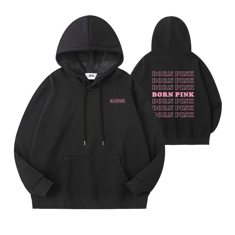 Áo Hoodie Chữ Born Pink Phối Túi Thêu Rộng unisex Có Nón Mũ 2 Lớp Cặp Đôi Nam Nữ Couple - Khoác Nỉ Thu Đông