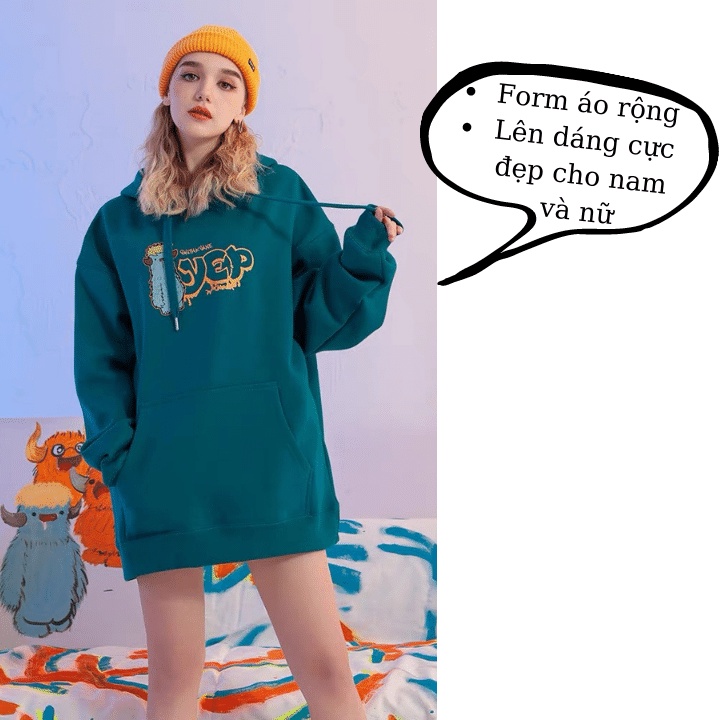 Giới thiệu Áo hoodie form rộng/Áo nỉ có mũ tay bồng unisex nam nữ chất nỉ ngoại siêu đẹp in hình cute Rô Store HD11