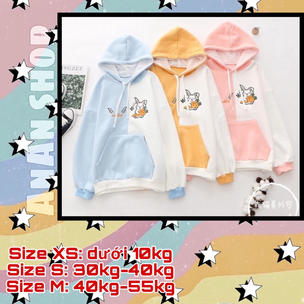 - Chất vải dù gió ko thấm nước, nhẹ, rất tiện dụng cho các bạn khoác nhẹ, tránh gió, tránh mưa. - ÁO HOODIE NỮ VẢI NỈ NHIỀU MÀU IN HÌNH THỎ CUTE ÁO HOODIE NỮ VẢI NỈ NHIỀU MÀU IN HÌNH THỎ CARROT CUTE - Tư vấn bảng size quần áo theo cân nặng:FREE SIZE DƯỚI 55KG