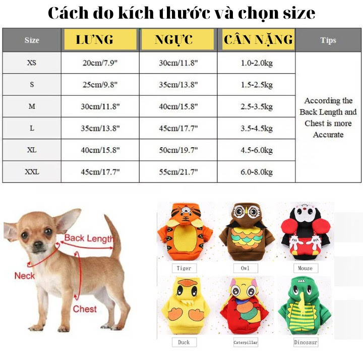 Size | XS, S, M ,L, XL, 2XL (Thích hợp cho chó mèo từ 1kg - 10kg) |