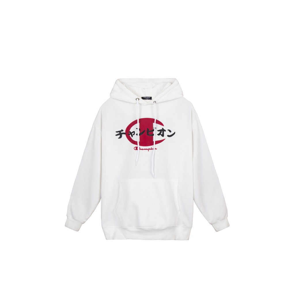 Giới thiệu Áo Hoodie In Chữ Champion Nhật Sắc Nét Phía Trước-Chất Nỉ Bông Cotton Mỏng Nhẹ-Form Rộng Rãi Unisex Nam Nữ-Màu Trắng