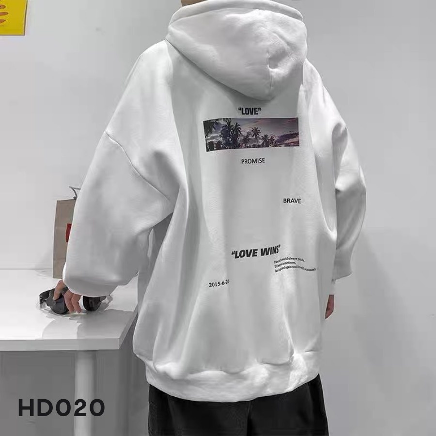 THÔNG TIN SẢN PHẨM: _Áo hoodie in love wins HD020 - PHONUI _ Màu sắc: Trắng - Đen _ Chất liệu nỉ bông _ Không xù lông, Không giãn khi giặt máy, Không bay màu. _ Vải dày, mịn, đem lại cảm giác thoải mái, trời lạnh mặc ấm..