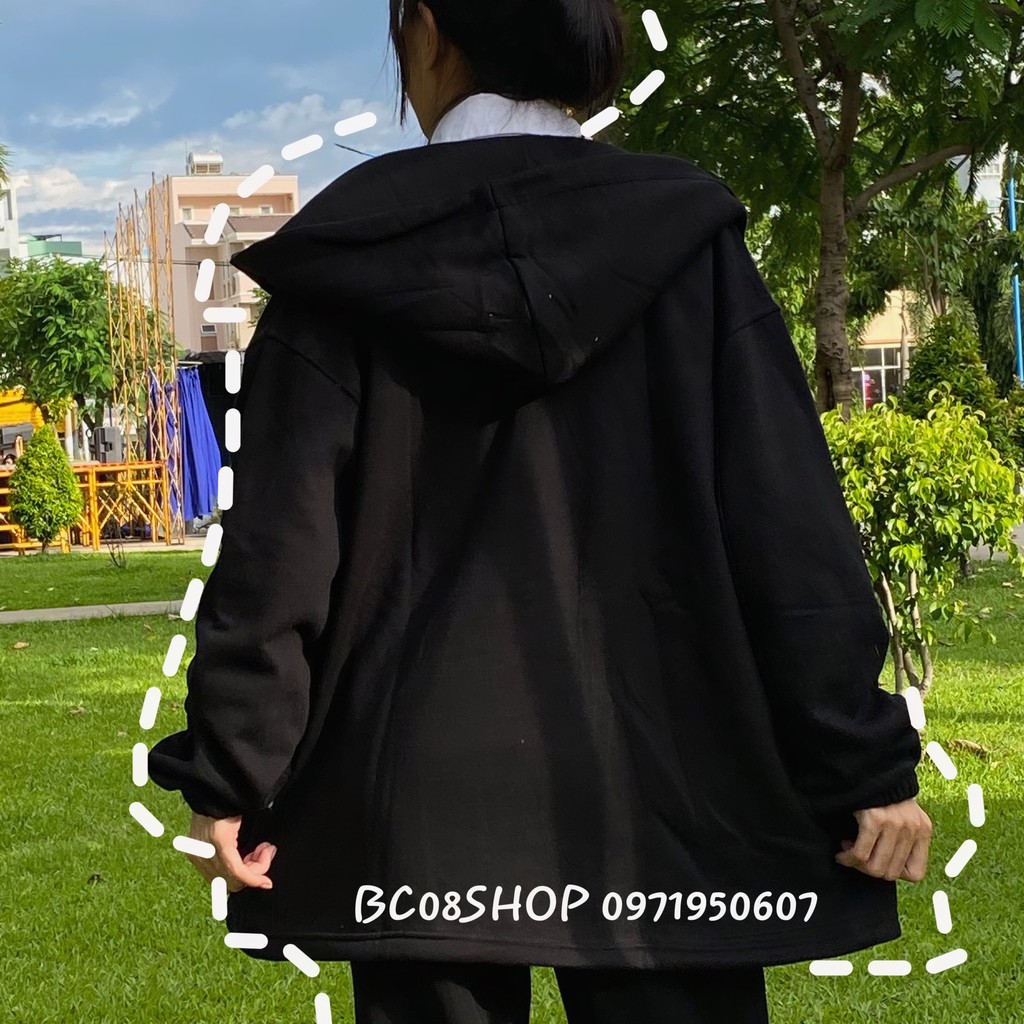 Giới thiệu Áo Hoodie Kéo Khóa Rút Dây Màu Đen Basic Chất nỉ bông