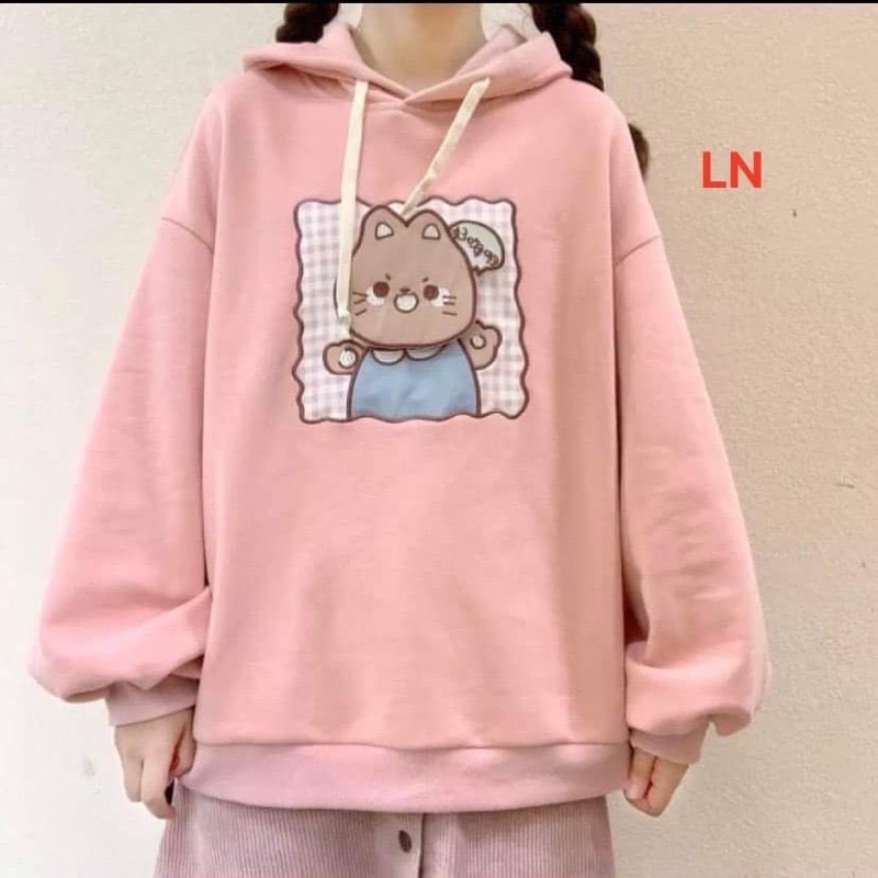 Thời Trang Nữ > Hoodie và Áo nỉ > Áo hoodies || Áo hoodie mèo nâu ô vuông TH6