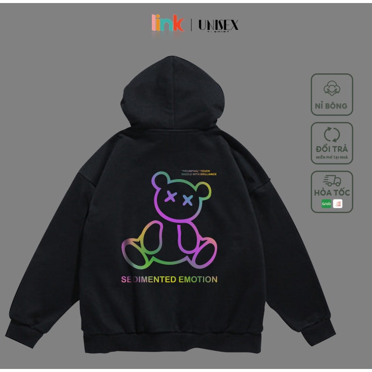 Áo Hoodie phản quang Gấu cute nỉ bông cao cấp mềm mịn Unisex (Đen, Trắng)