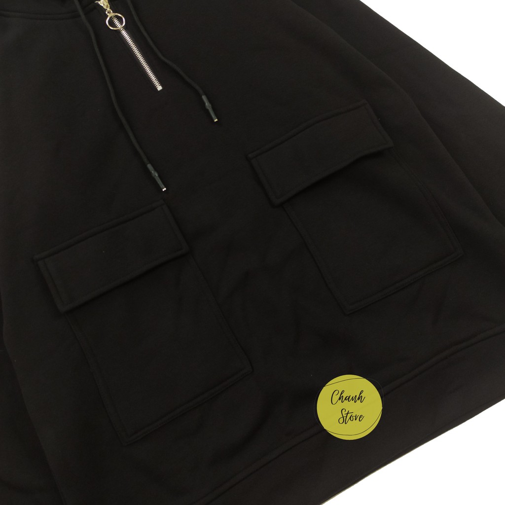 THÔNG TIN SẢN PHẨM: • Size: M (45-60kg) – L(61-75kg) • Màu: Đen • Chất liệu: Nỉ bông • Khóa: Nhôm • Form: Dáng rộng oversize • Túi: 2 _____________________________________
