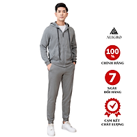Bộ nỉ hoddie nam ALIGRO kéo khóa có mũ màu ghi đậm BN.17