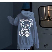 Áo Hoodie Phản Quang Gấu 2 Mặt, Áo khoác hoodie nam nữ, áo kiểu thu đông in gấu phản quang 7màu, mặc đôi nhóm, Áo hoodie phản quang cừu bạch dương