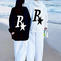 Áo hoodie in R ngôi sao nón 2 lớp form dưới 70kg, Áo Khoác Jacket Hoodie Zip Nỉ Thu Đông Nam Nữ JUNE Unisex Form Rộng nón 2 lớp rộng trùm qua đầU