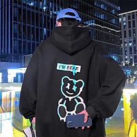 áo hoodie unisex nam nữ hình gấu phản quang có big size vải nỉ bông cao cấp