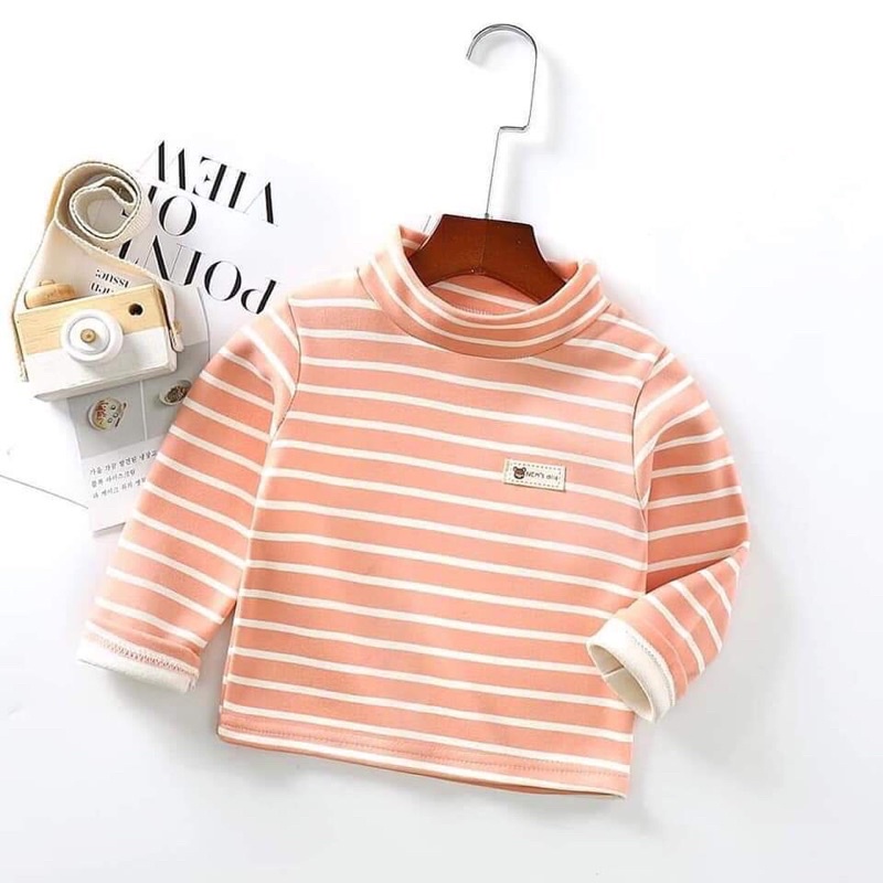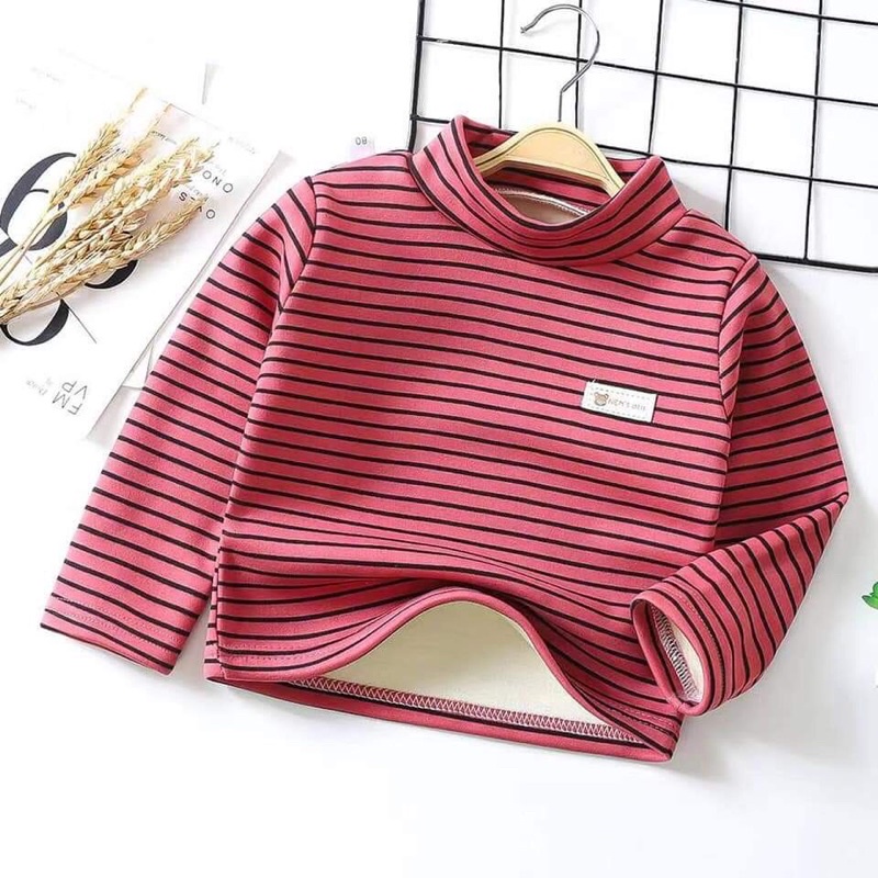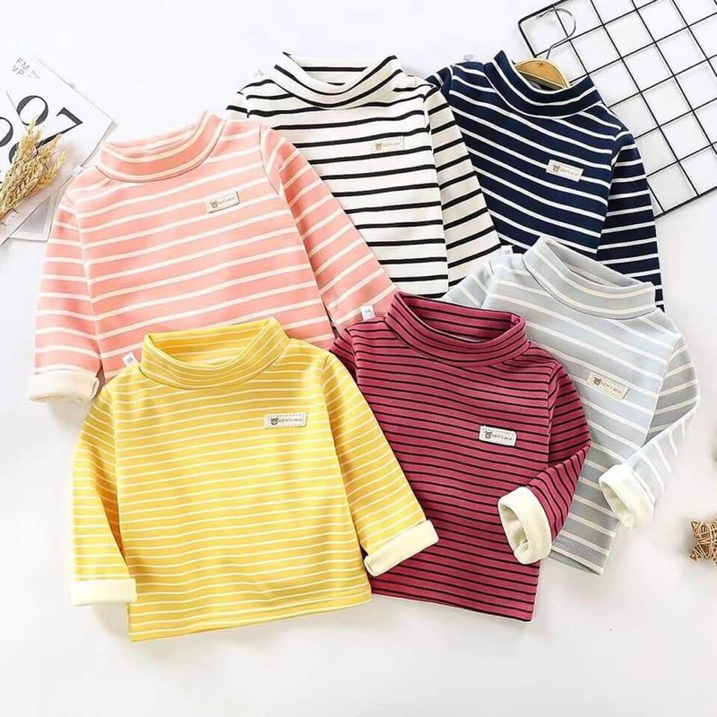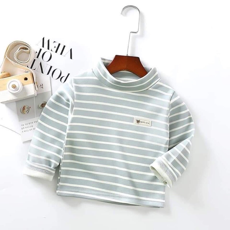 Áo kẻ lót nỉ thu đông cổ 3 phân bé trai bé gái đình đám_Quần áo trẻ em thu đông