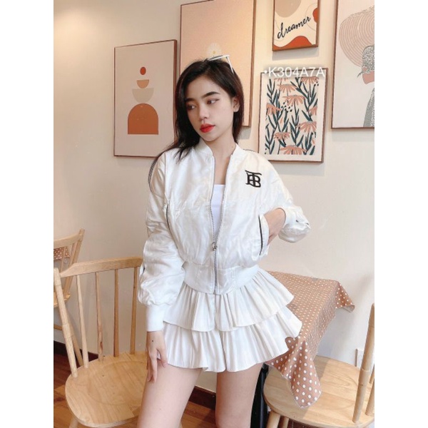 Thời Trang Nữ > Áo khoác > Khác || Áo khoác bom logo chữ B, áo bomber logo chất lụa