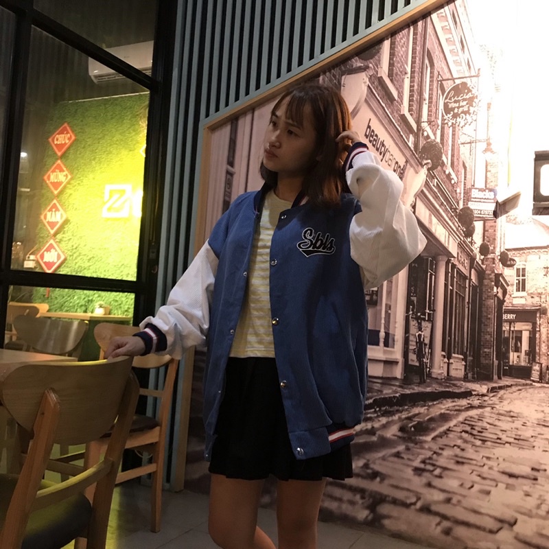 Giới thiệu Áo khoác bomber nam nữ nhung cúc bấm thêu chữ Symbolic fom rộng unisex oversize dưới 70kg phong cách Hàn Quốc AT 014