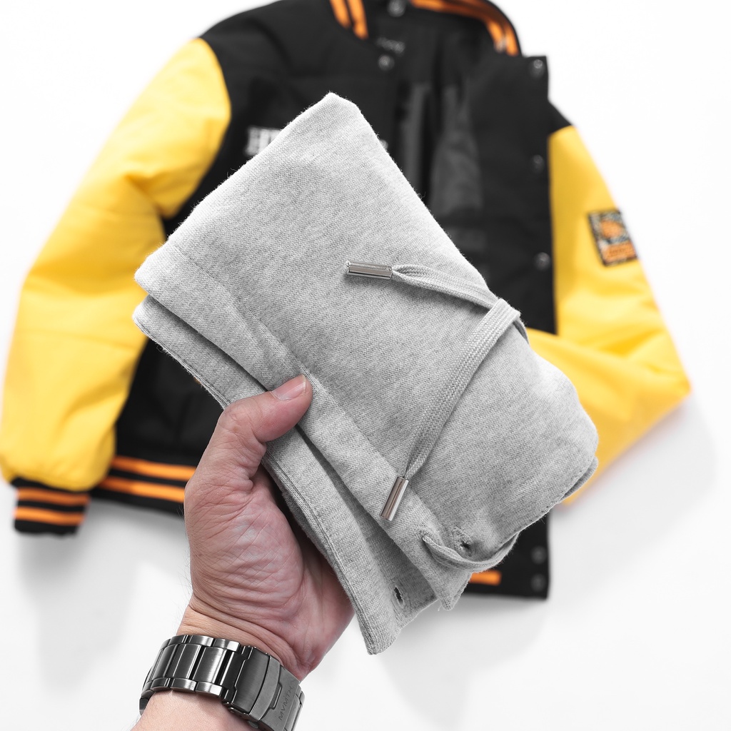 Giới thiệu Áo khoác bóng chày unisex nam HEBOZ Bomber Varsity Jacket 2M chất dù trần bông dày dặn có nón tháo rời - 00000843