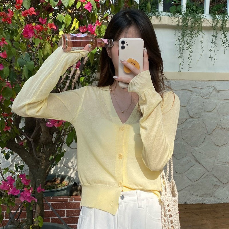 Yêu hay không yêu nói một lời 🙊 Chào hè bằng 1 em áo vàng tươi SO SUMMER nhé.. 🍃 Cardigan mỏng mặc hè là 1 món đồ không thể thiếu nếu muốn có 1 look thật Hàn.. Mặc đồ dây mặc đồ hở cứ khoác 1 em này vào thôii. Áo cardigan chất mongtoghi, ai chưa rõ là chất thế nào thì cứ tưởng tượng là chất len lưới mỏng không dính da, mặc hè vẫn cực kỳ thoáng 🥰 Mẫu này tay áo hơi ôm vào, cực kỳ xinh nhaa