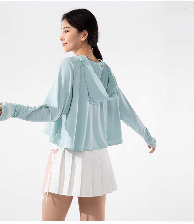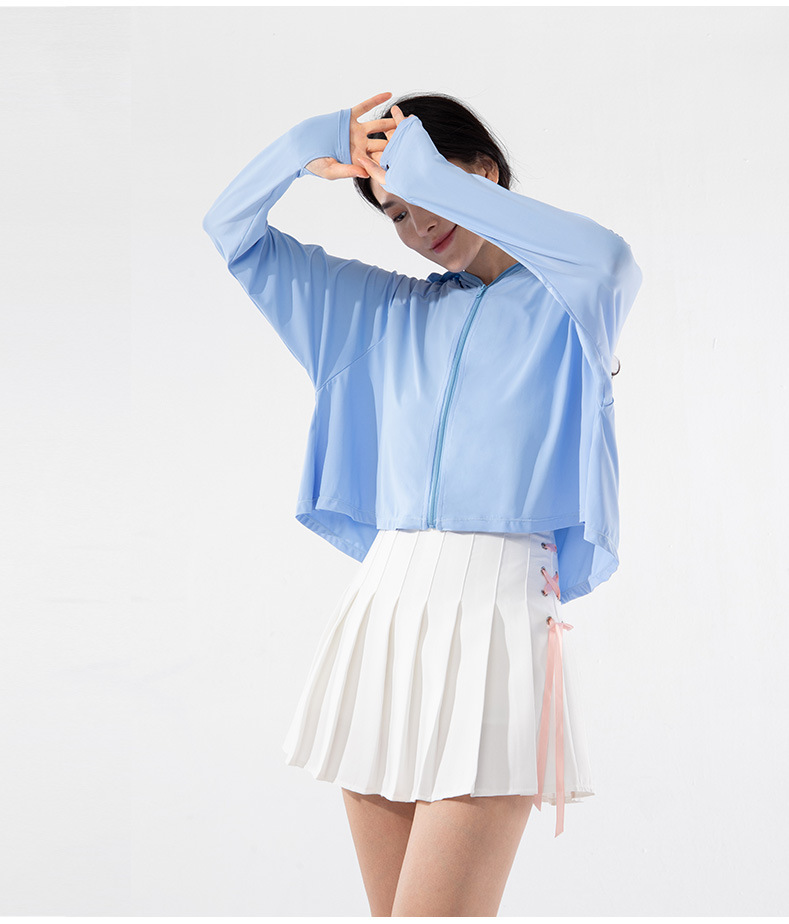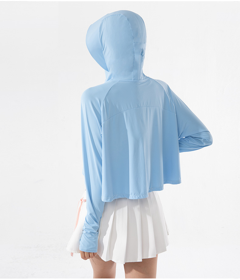 Bảo vệ toàn diện: Thiết kế với tay áo dài và cổ cao, bảo vệ cổ, vai, và tay khỏi tác động của tia UV.