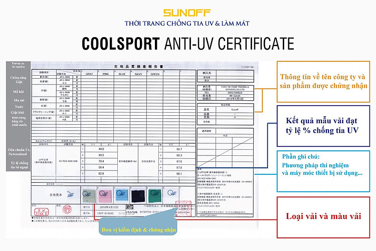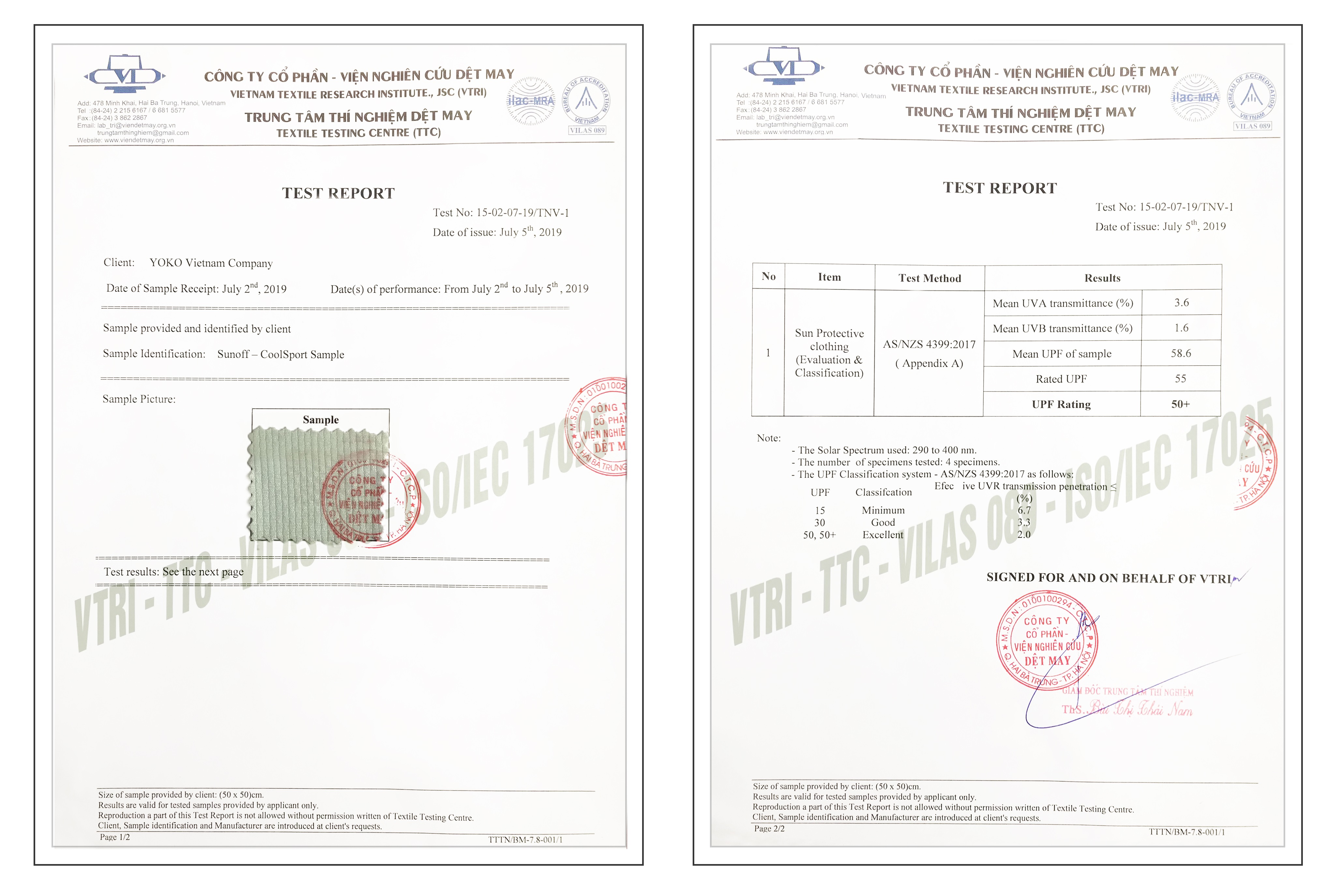 Kết quả thí nghiệm & từ tổ chức Intertek Nhật Bản với dòng sản phẩm Áo chống nắng Sunoff - CoolSport