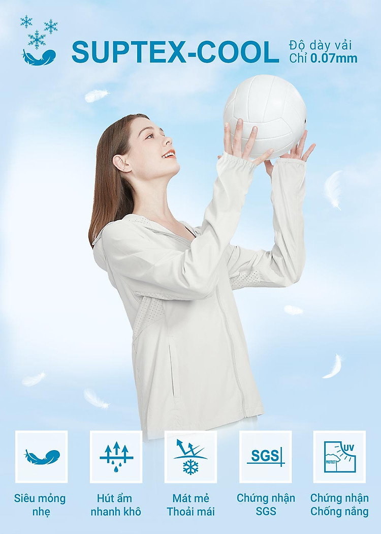 | UV Cut - Chống tia UV | Moisture Wicking - Hút ẩm nhanh khô | Cool Touch - Thoát nhiệt làm mát da |