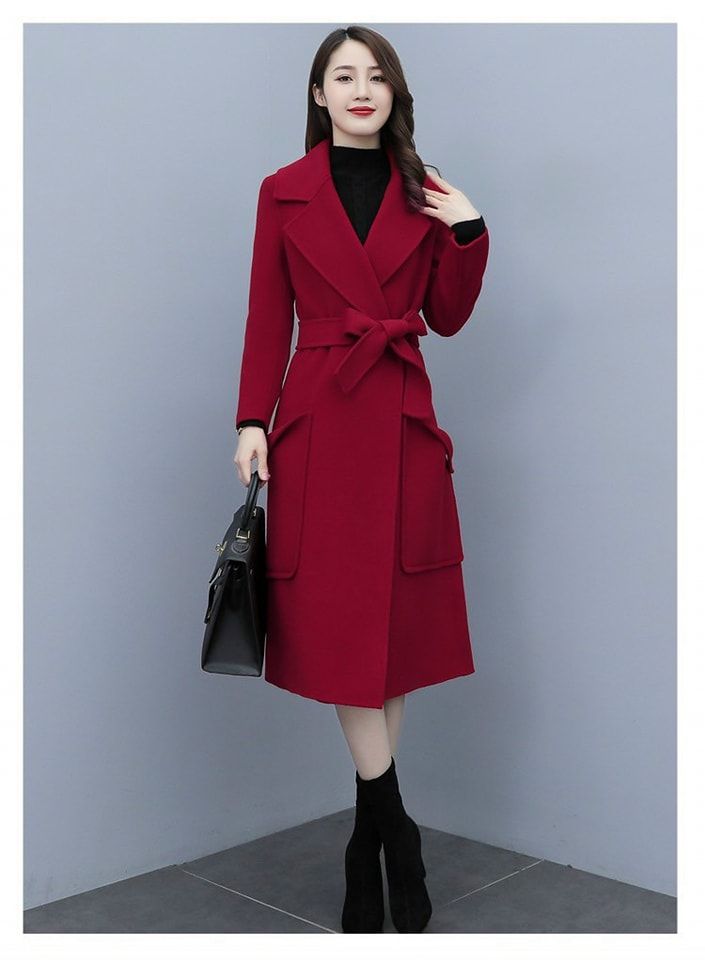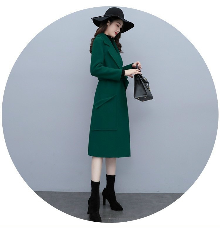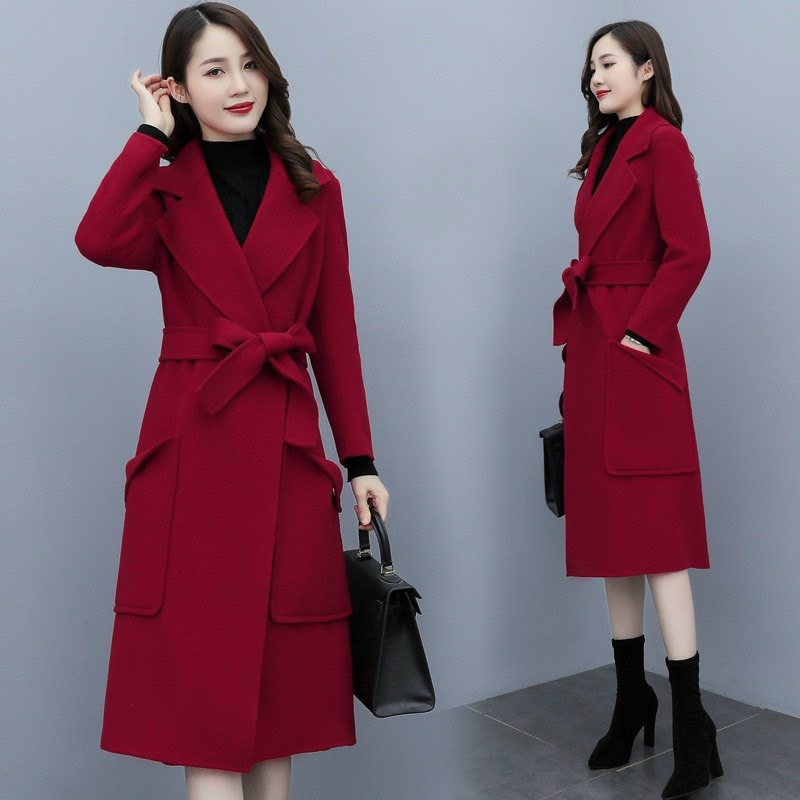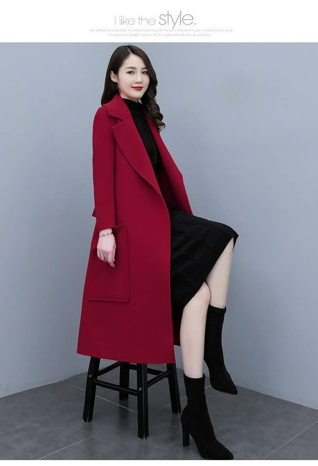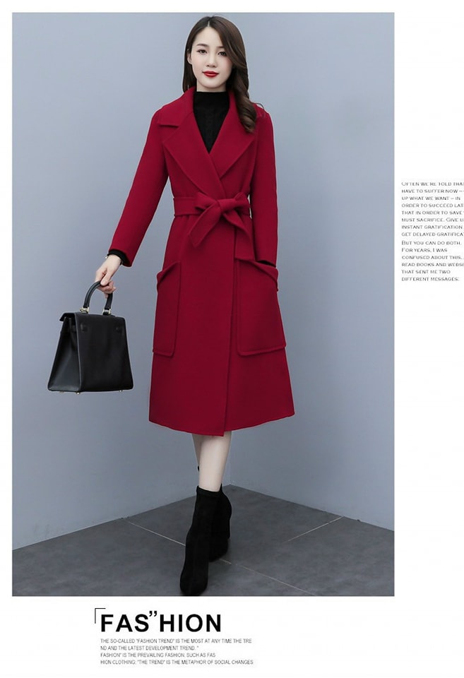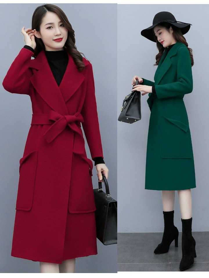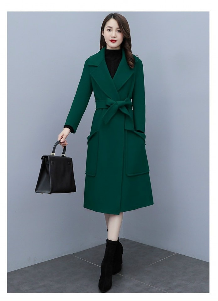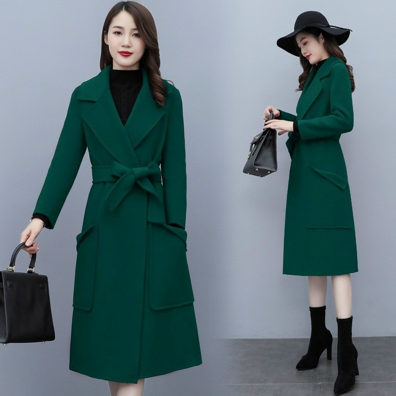 Áo Khoác Dạ Cổ Vest Dáng Dài Phối 2 Túi To Kèm Belt Cao Cấp