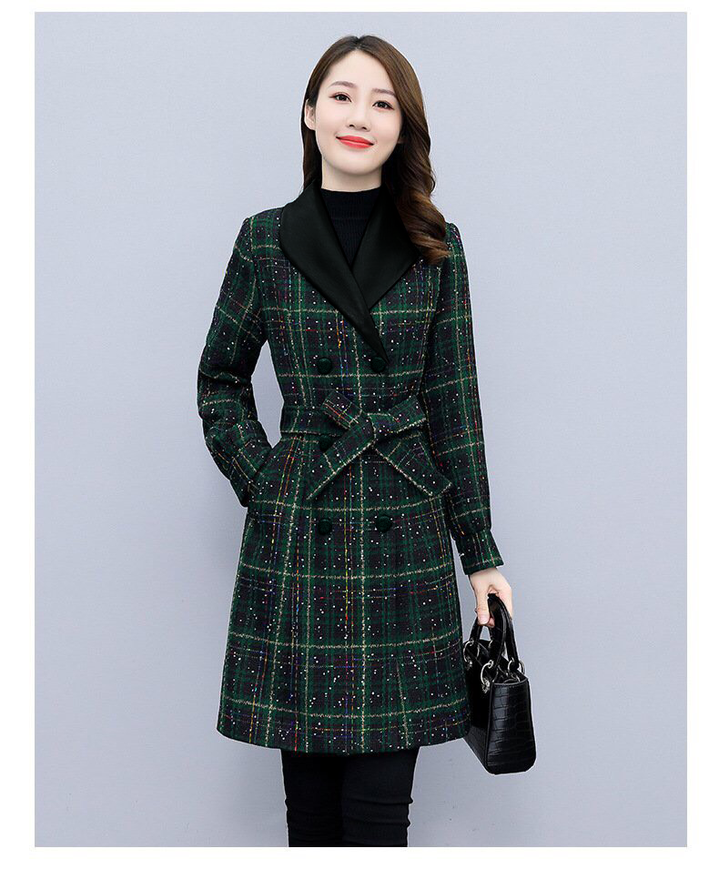 ÁO KHOÁC DẠ HỌA TIẾT CARO KÈM THẮT LƯNG
