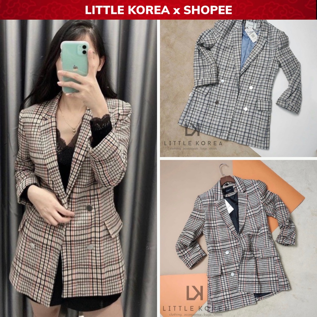 Giới thiệu Áo Khoác Dạ Nữ, Áo Blazer Nữ 2 Lớp Dáng Dài Kẻ Caro STRA Xuất Dư - LITTLE KOREA