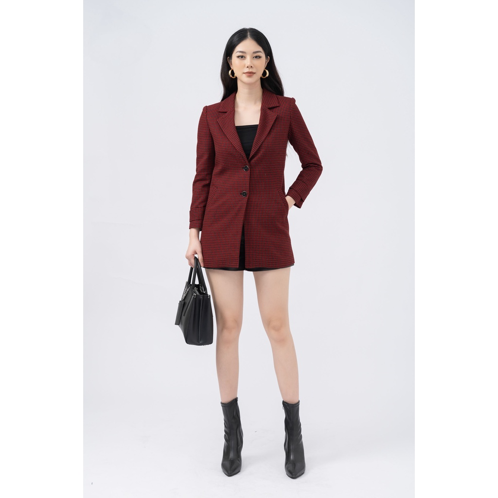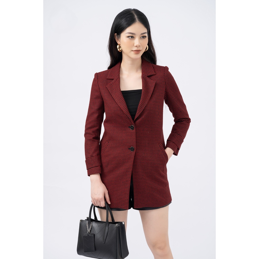 Giới thiệu Áo khoác dạ nữ họa tiết màu đỏ đen cổ hai ve dài tay FIONA F651459