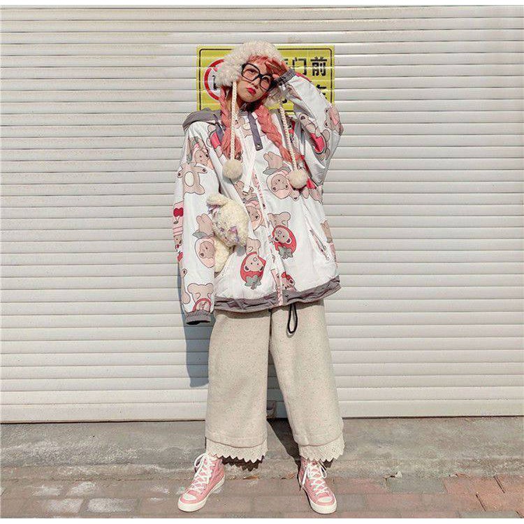 Giới thiệu Áo Khoác Gió Gấu Teddy 🦋 Áo Gió 2 Lớp In Hình Kèm Mũ Tay Bo Dáng Rộng 🦋