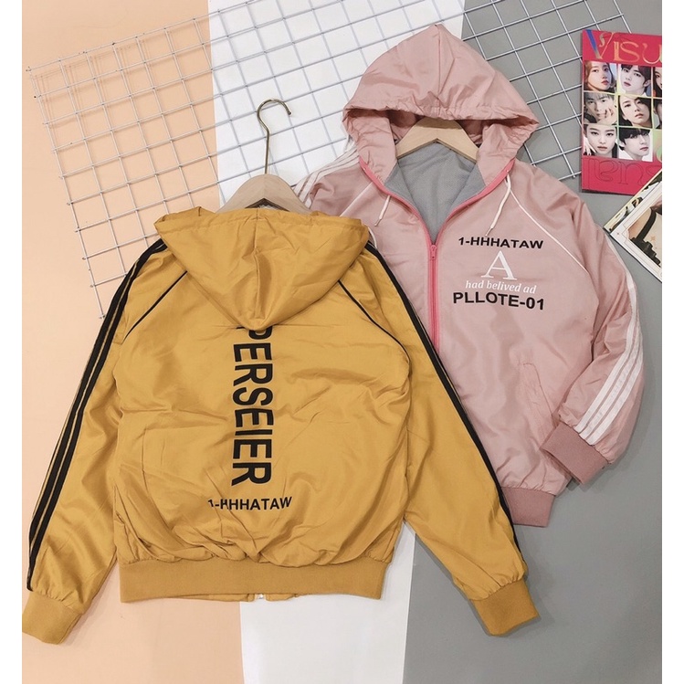 Giới thiệu áo khoác gió nữ 2 lớp 3 sọc thể thao chữ lưng bo gấu LH