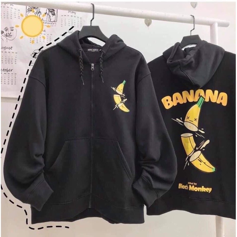 áo khoác hoodie nỉ mũ khoá kéo chuối cắt khúc chất đẹp unisex
