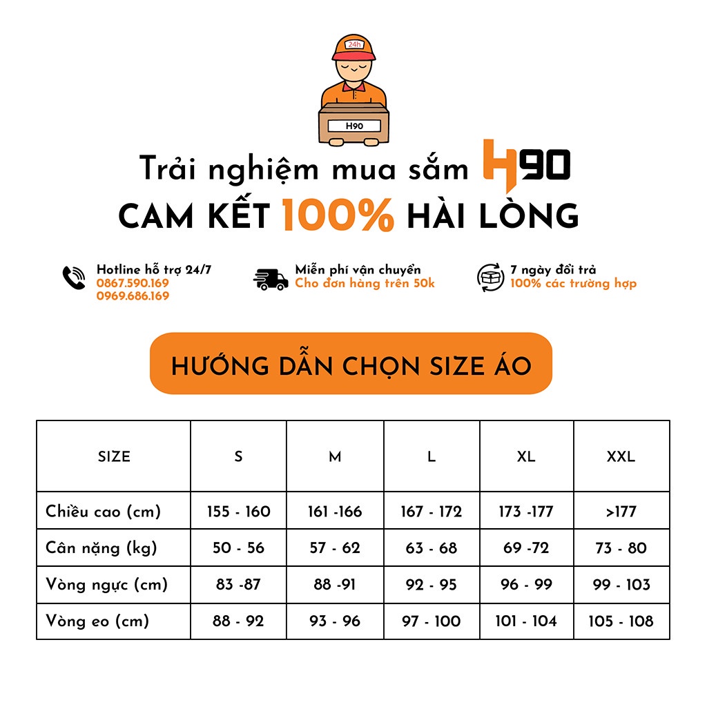 H90 Jeans – Thời trang cho phái mạnh 💪H90 XIN CAM KẾT: ☑️Bảo hành 12 tháng ( 1 đổi 1) với đường may và độ bền của vải ☑️Sẵn sàng nhận lại hàng nếu Quý khách không hài lòng và hoàn lại tiền 100% ☑️Cam kết chất lượng và mẫu mã sản phẩm giống với hình ảnh ☑️Hoàn tiền hoặc đổi hàng ngay lập tức nếu sản phẩm bị lỗi do sơ suất của nhà sản xuất ☑️Cam kết được đổi trả hàng trong vòng 7 ngày. (Sản phẩm còn nguyên tem mác và chưa sử dụng ) ☑️Tất cả mẫu quần jean giao đến tay KH đều là hàng Made In Việt Nam chính hãng do đội ngũ designer của H90 thiết kế 📜 THÔNG TIN SẢN PHẨM 📍 Tên sản phẩm: Áo khoác jean nam cổ tàu cao cấp H90 dáng ôm chất co giãn HJKJ002 📍 Xuất xứ: Việt Nam 📍 Chất liệu: 98% cotton, 2% spandex 📍 Màu sắc: Xanh trơn, Xanh xước 📍Form dáng: Slimfit 📍 Size: S, M, L, XL 📍 Tính năng nổi bật: - Chất vải jean mang lại sự năng động, khỏe khoắn cho các chàng trai cá tính, bụi bặm - Chất vải jean co giãn tốt mang lại sự thoải mái khi mặc cũng như khi vận động. 📜 HƯỚNG DẪN CHỌN SIZE 📍 Bạn thích mặc vừa vặn => Hãy chọn cỡ theo bảng size. Bạn thích mặc thoải mái => Hãy chọn lên 1 size 📍 Quý khách vui lòng tham khảo bảng size H90 đầy đủ ở mục hình ảnh. - Size S: Cân nặng 56-60kg, Chiều cao 164-166cm - Size M: Cân nặng 61-65kg, Chiều cao 167-169cm - Size L: Cân nặng 66-68kg, Chiều cao 170-172cm - Size XL: Cân nặng 69-71kg, Chiều cao 173-175cm 📍 KHUYẾN KHÍCH KHÁCH HÀNG NHẮN TIN Ở Ô " CHÁT NGAY " ĐỂ NHẬN TƯ VẤN TRƯỚC KHI ĐẶT HÀNG ĐỂ HẠN CHẾ ĐỔI TRẢ 🎁 ƯU ĐÃI KHI MUA HÀNG TẠI H90: - Click “Theo dõi” shop để nhận ngay VOUCHER giảm giá. - Nhận hàng đánh giá 5* kèm hình ảnh sản phẩm và video, nhắn tin 📩 shop ngay để nhận QUÀ nhé! 🎁 HÃY ẤN MUA NGAY HÔM NAY ĐỂ NHẬN TẤT CẢ NHỮNG ƯU ĐÃI TỪ SHOP. ** H90 cảm ơn bạn đã tin tưởng và đồng hành cùng shop. Chúc bạn có một ngày mua sắm thật thoải mái cùng H90 #aokhoacnam#aokhoac#aokhoacnamdep#aokhoacnamhanghieu#aokhoacjeannam#aokhoacjean#aobonam#aobo#aojeannam#aokhoacbonam#khoacbonam#khoacjeannam