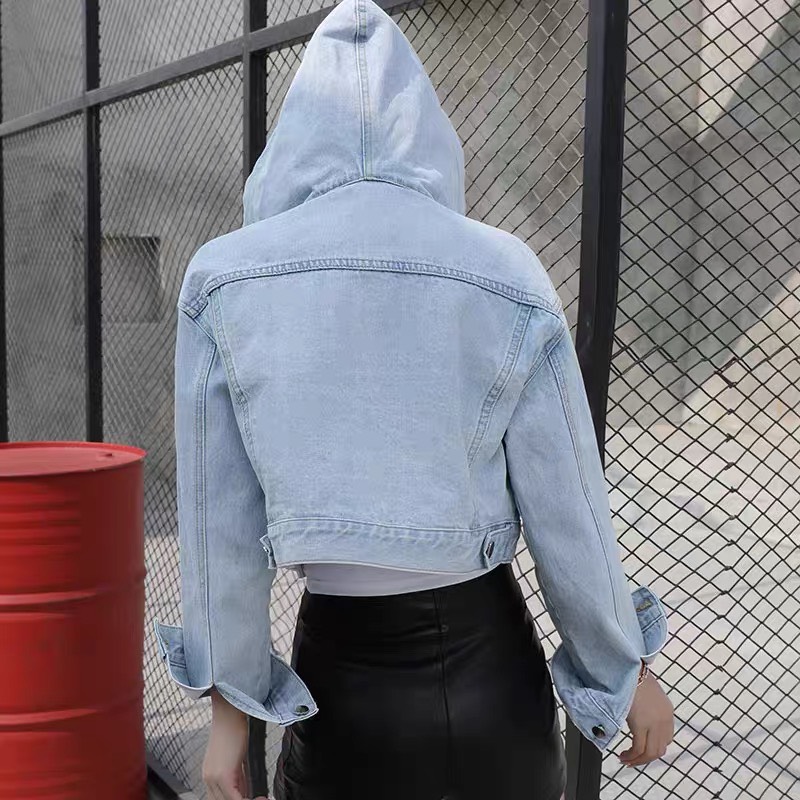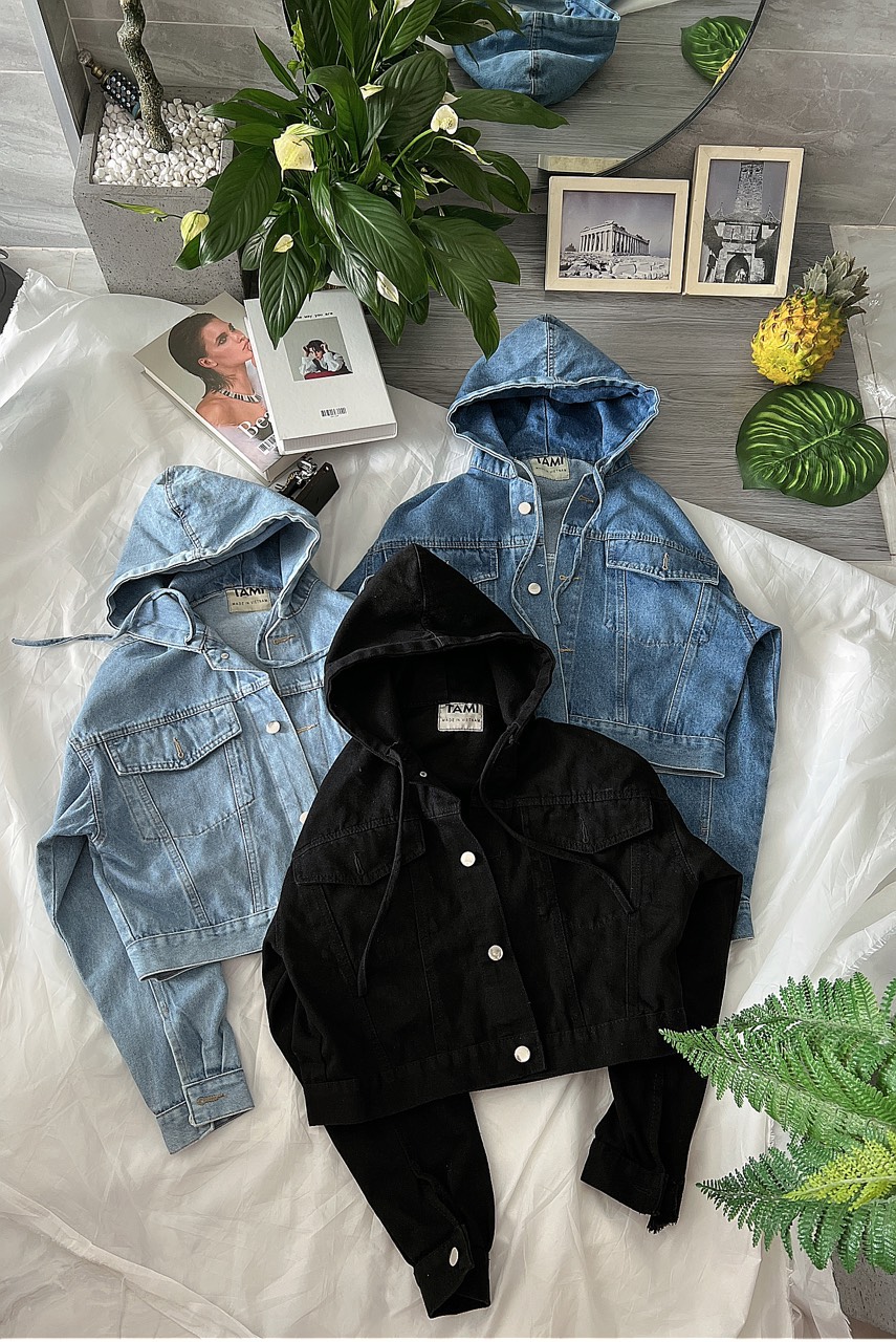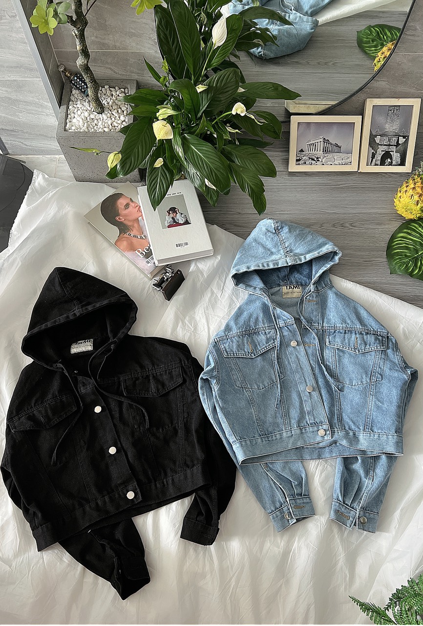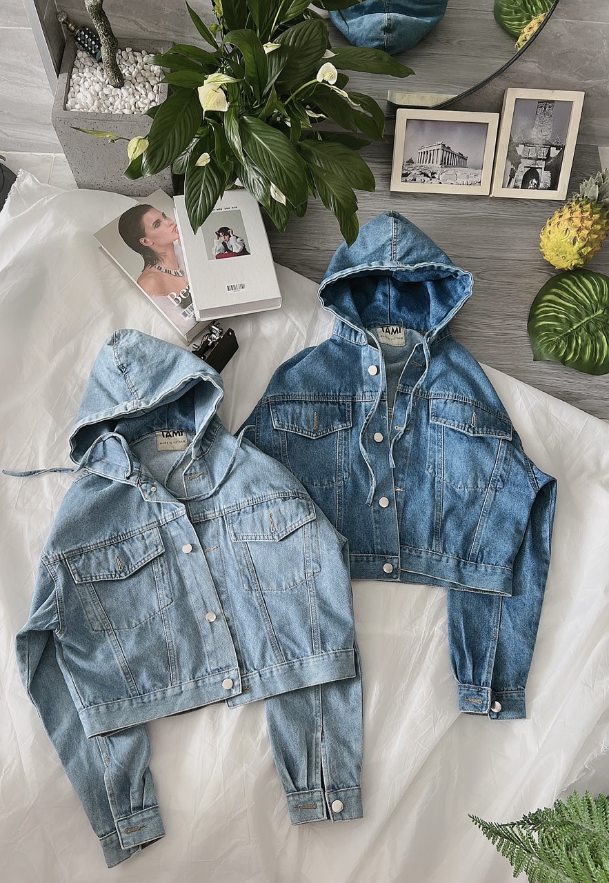 Áo Khoác Jean Nón Nữ Dạng Croptop