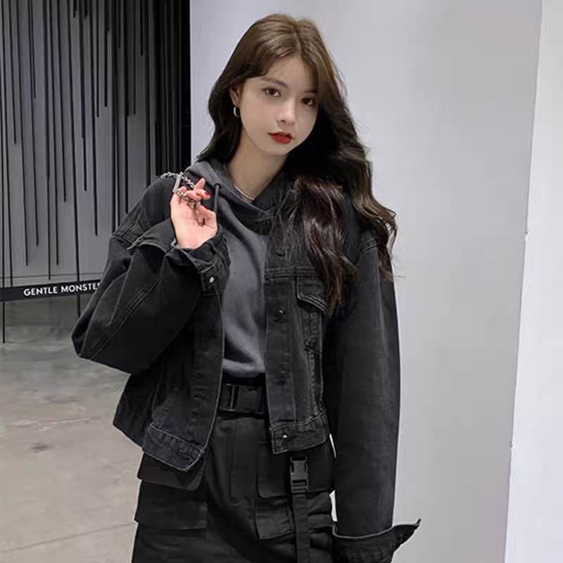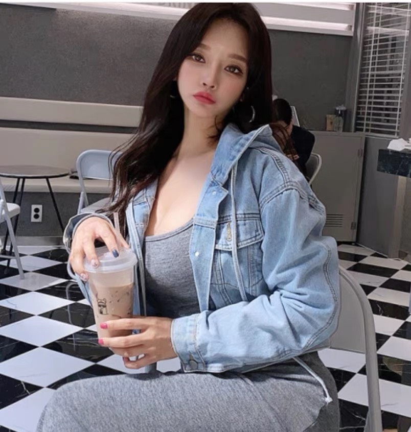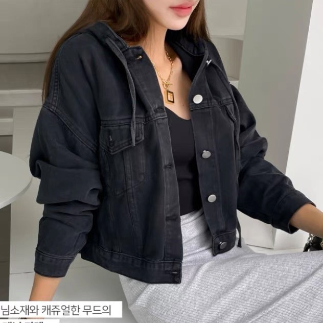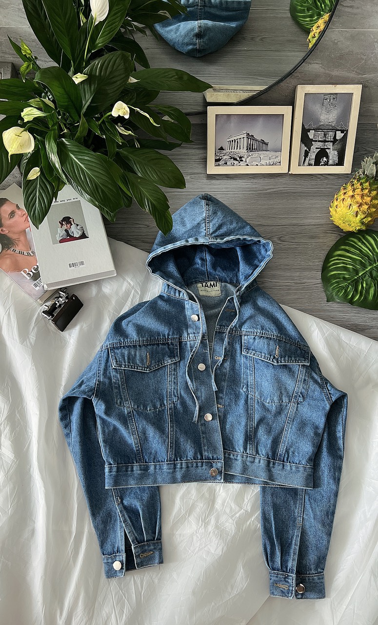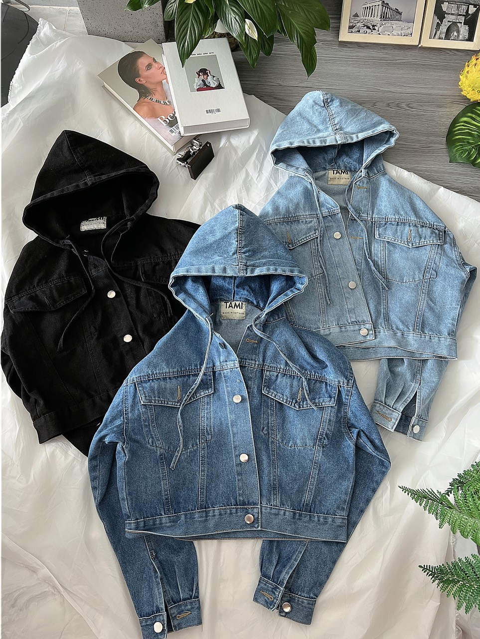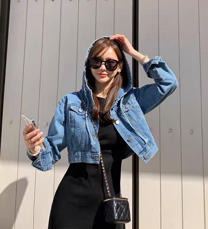 Áo Khoác Jean Nón Nữ Dạng Croptop