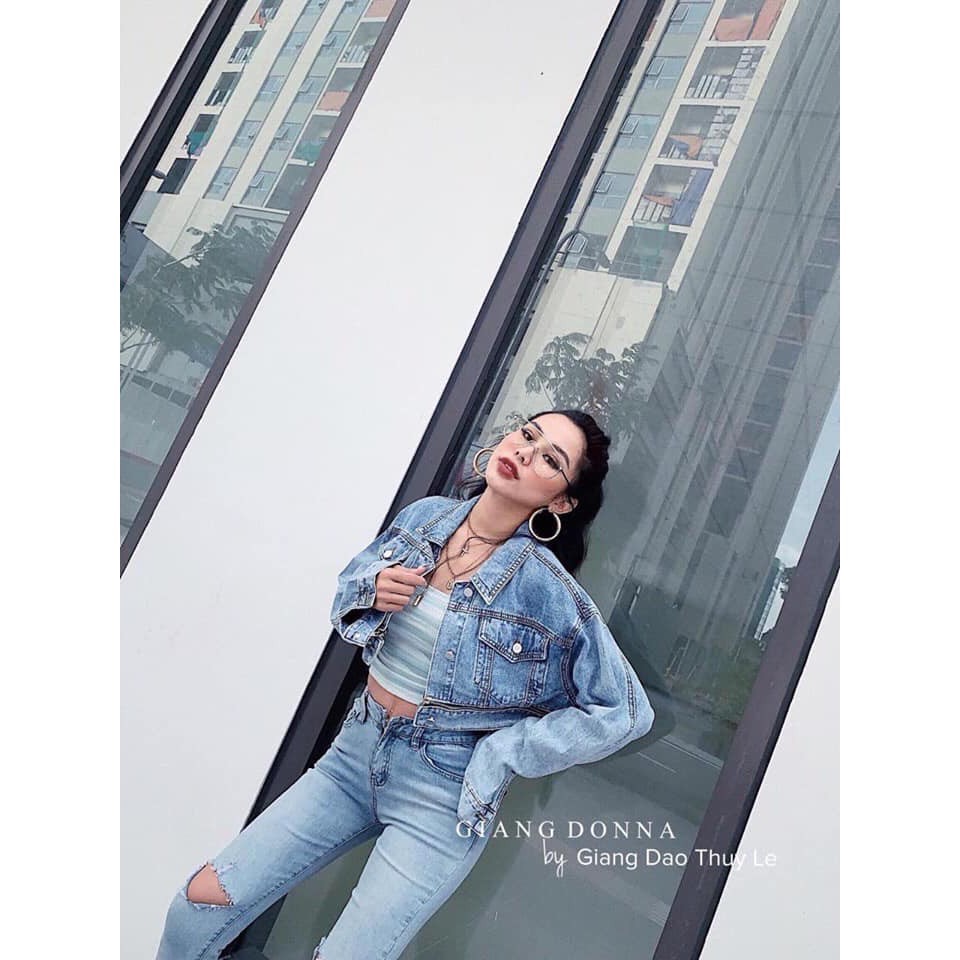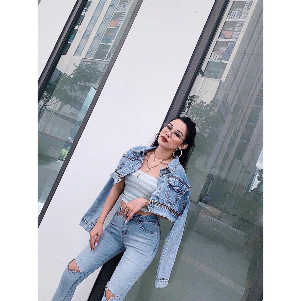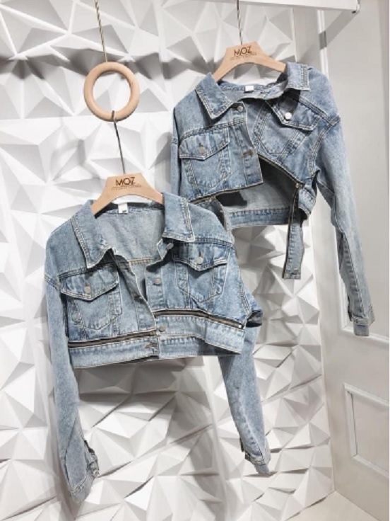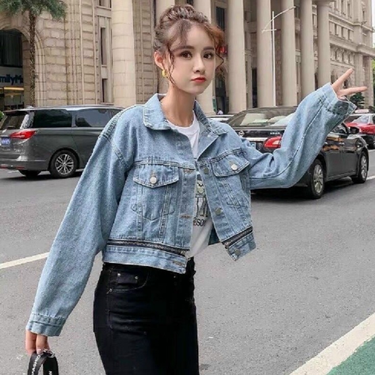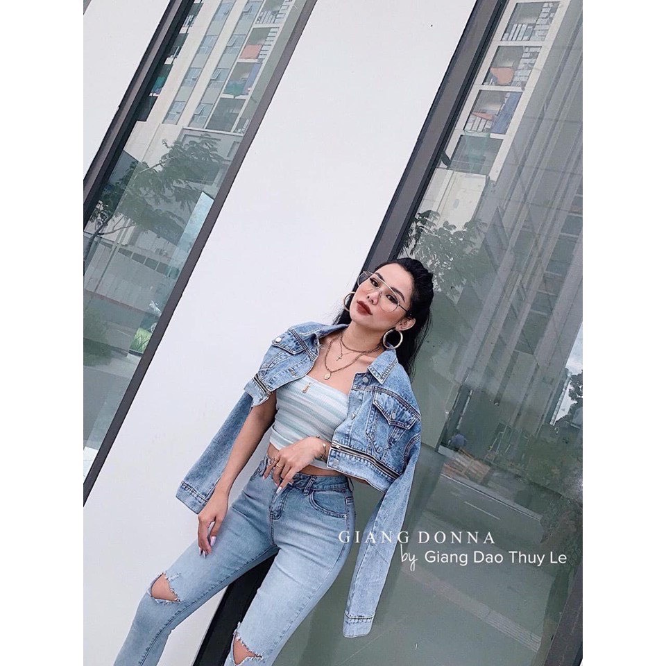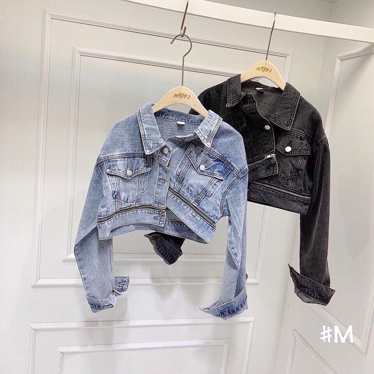 Áo khoác jean nữ lửng HOTTREND phối dây kéo cao cấp- chất denim chuẫn hàng shop