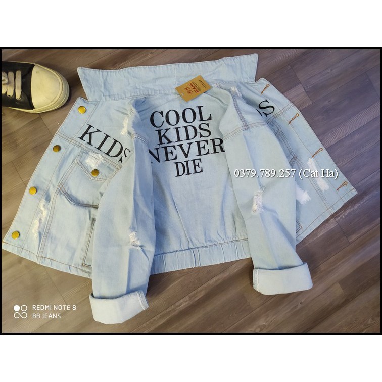 Giới thiệu Aó khoác jean nữ xám xanh như hình form dưới 58Kg Cools kids BB18