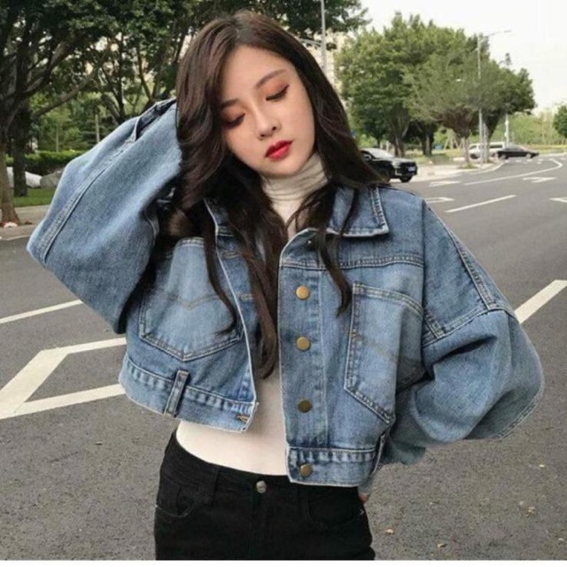 Thời Trang Nữ > Áo khoác > Áo khoác ngoài || Áo khoác jean nữ xanh xám đính nút sau điệu Đà nữ tính freesize dưới 65kg hàng loại 1