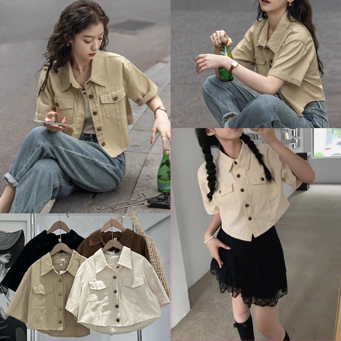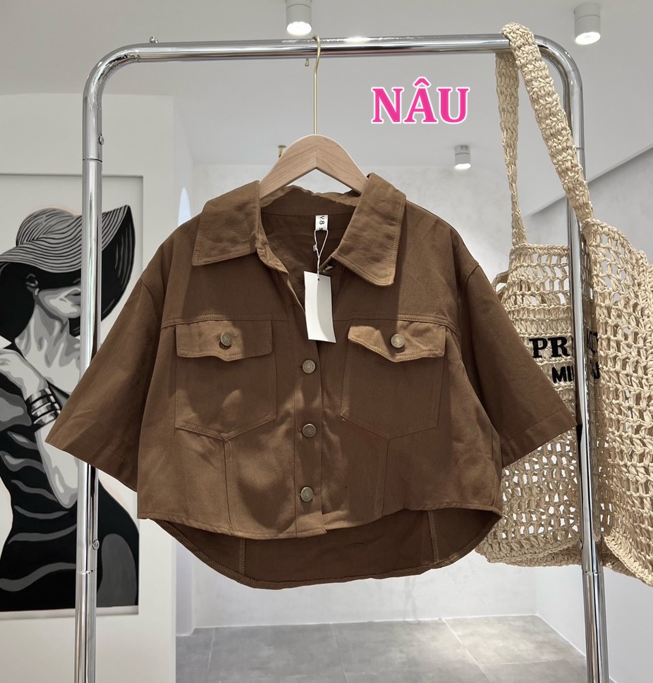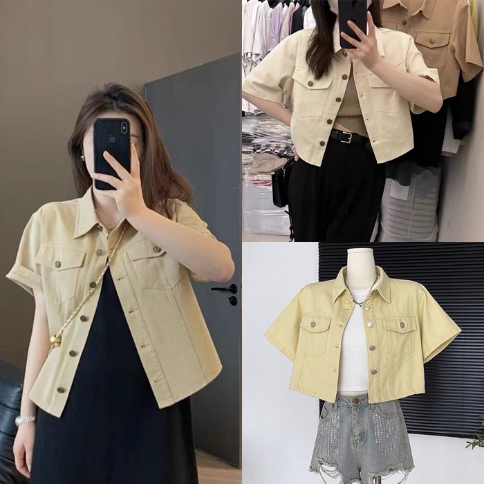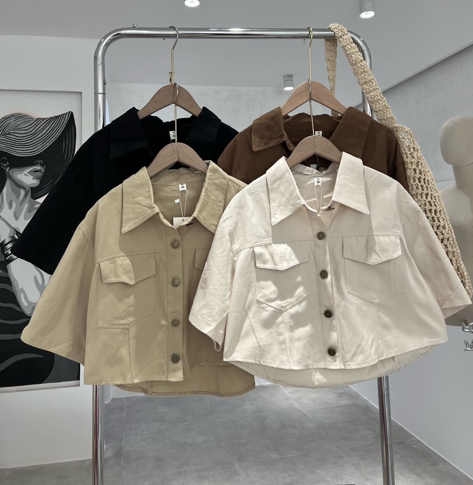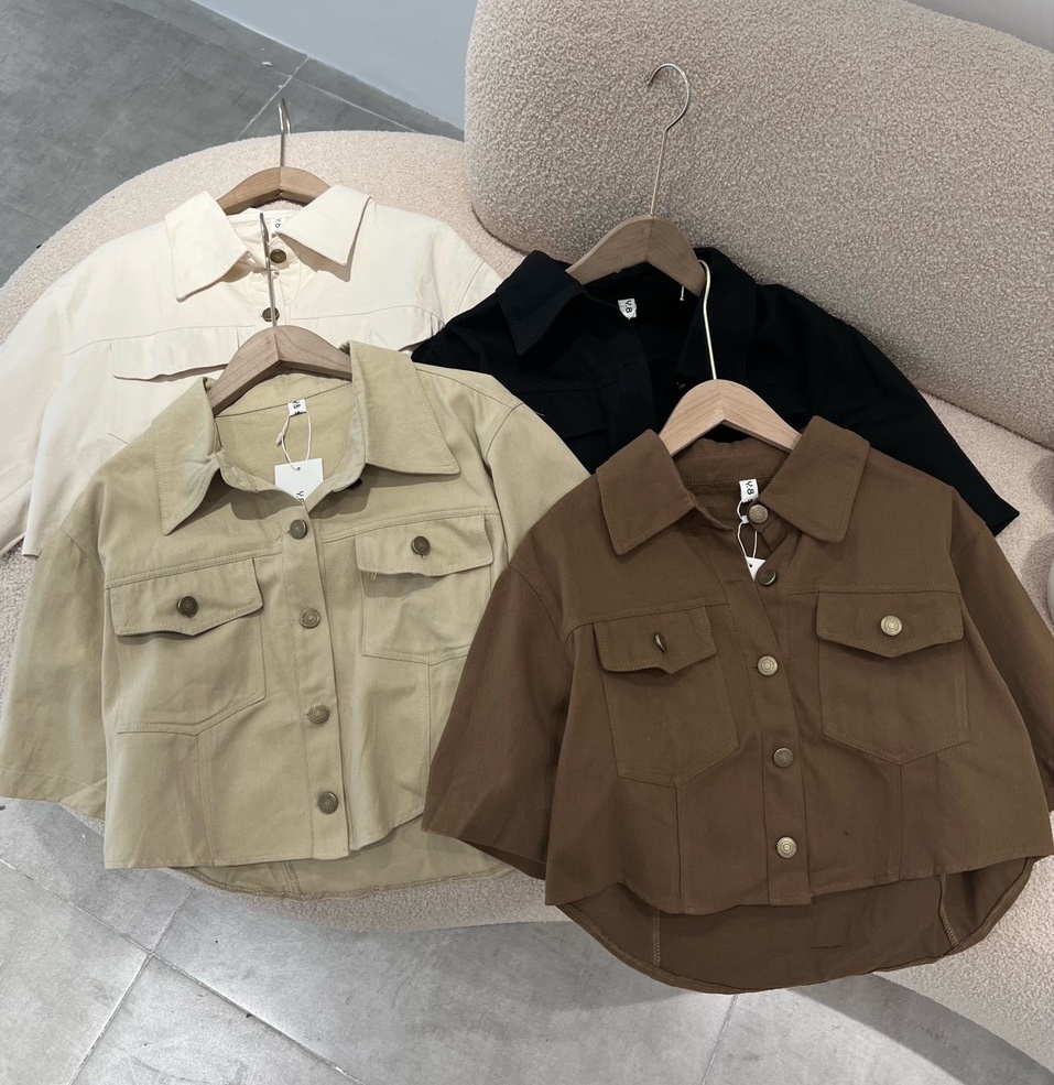 ÁO KHOÁC KAKI CROPTOP LỬNG SƠ MI TAY NGẮN RỘNG SUÔNG TRƠN MÀU CƠ BẢN DẠO PHỐ ĐI LÀM ĐI CHƠI CÔNG SỞ