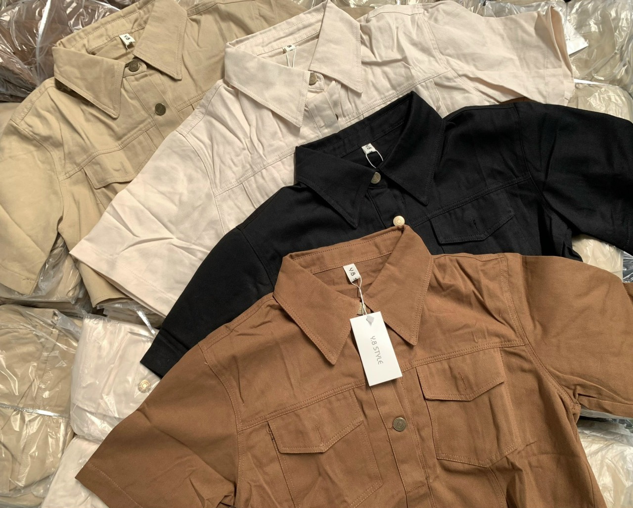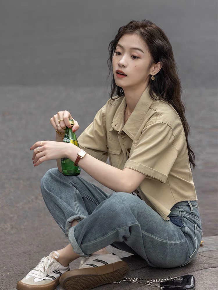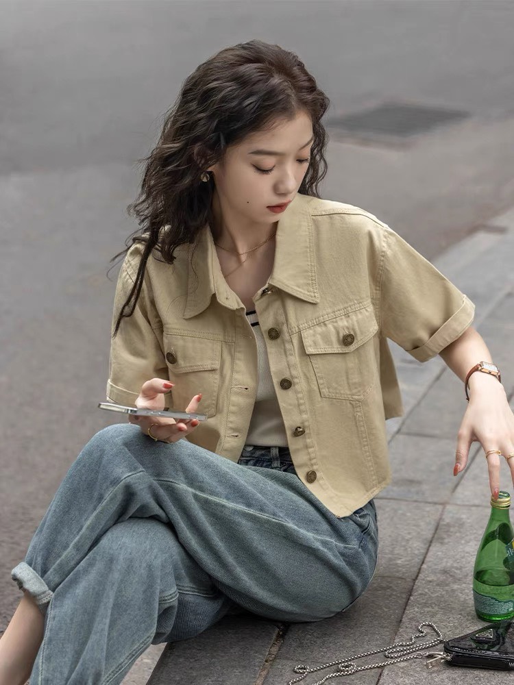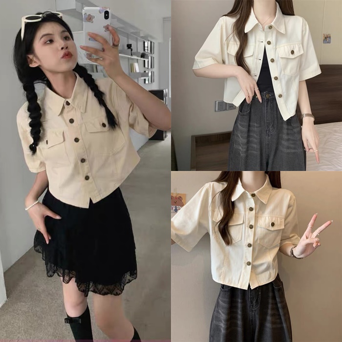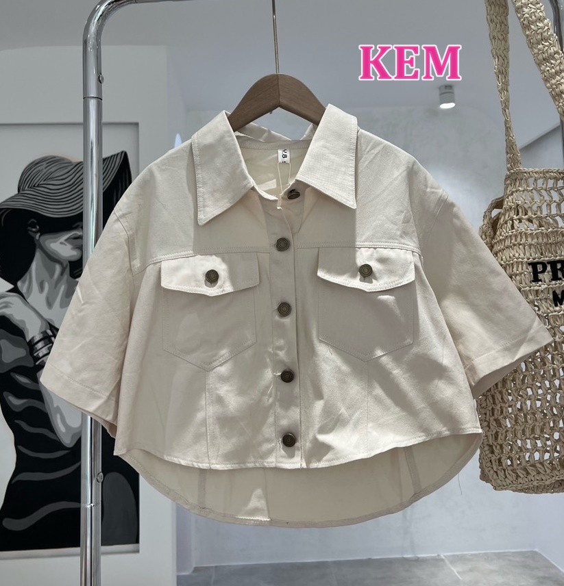 ÁO KHOÁC KAKI CROPTOP LỬNG SƠ MI TAY NGẮN RỘNG SUÔNG TRƠN MÀU CƠ BẢN DẠO PHỐ ĐI LÀM ĐI CHƠI CÔNG SỞ