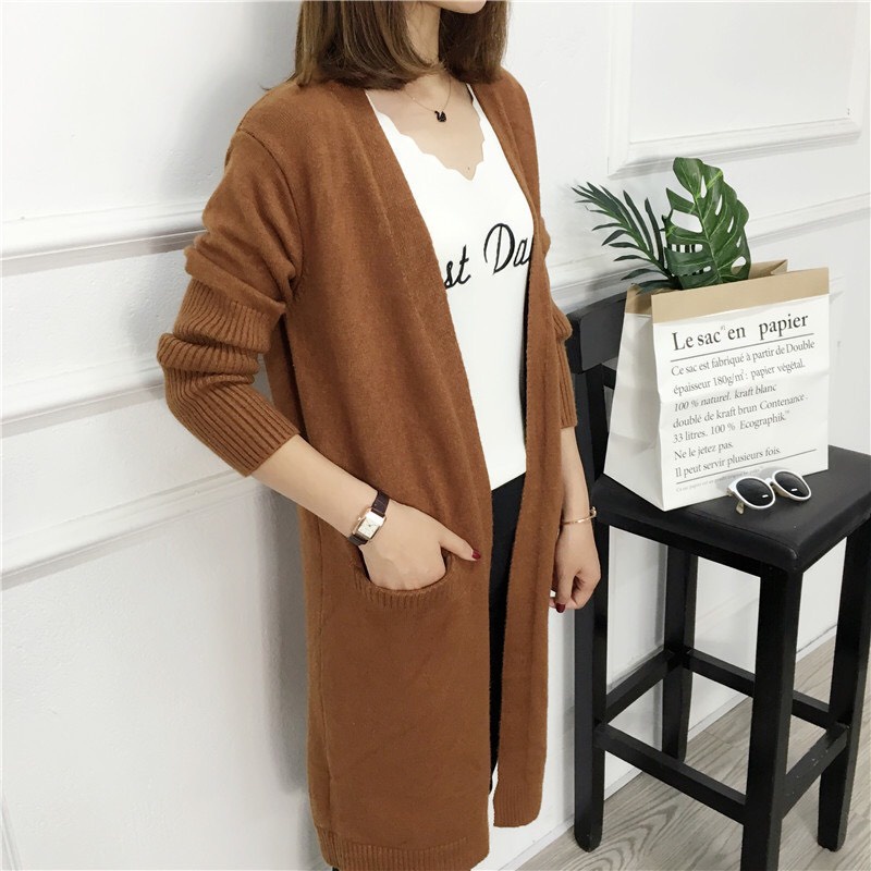 Giới thiệu Áo khoác len cardigan dáng dài có túi len mịn phong cách Hàn Quốc