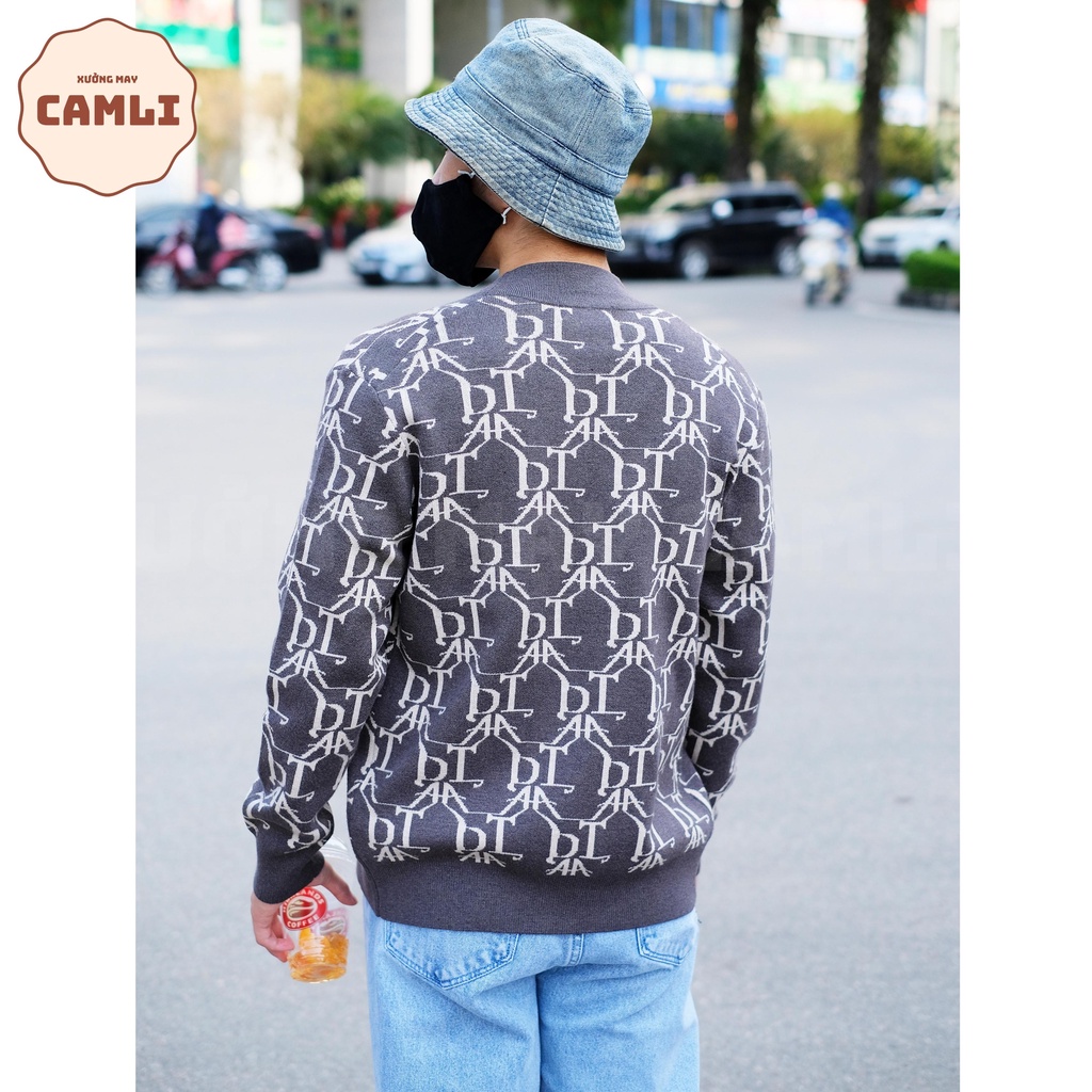 Giới thiệu Áo khoác len Cardigan nam, hoạ tiết monogram DATAMAN, dệt Jacquard dày dặn, siêu mềm mịn DT22