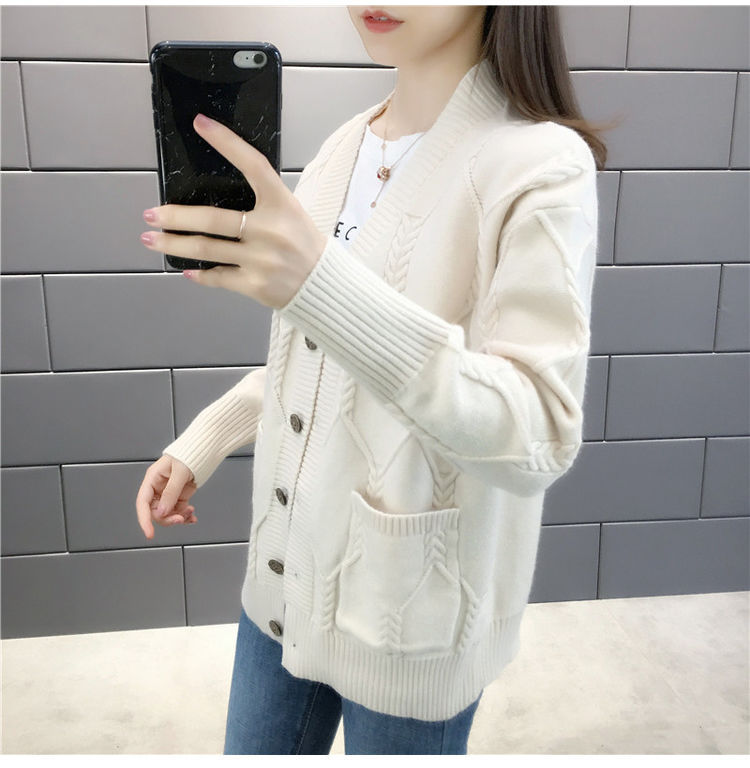 Áo khoác cardigan nữ đẹp, Dáng Nhỡ túi thật tay phối họa tiết vặn thừng trẻ trung năng động, Chất liệu len dệt kim mềm mịn không xù lông