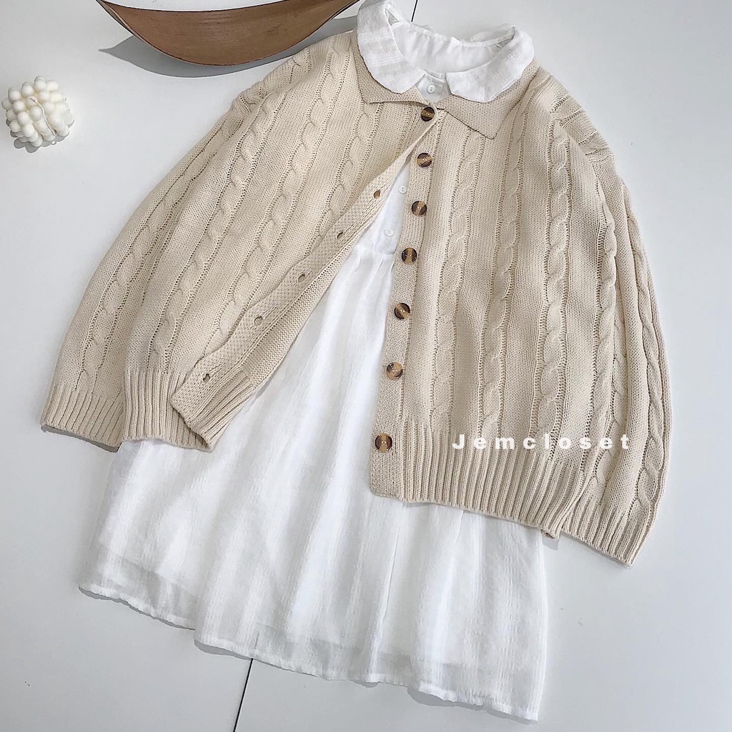 Giới thiệu Áo Khoác Len Nữ JEM CLOSET Form Rộng Áo Len Cardigan Chengy Màu Sữa Lên Dáng Tiểu Thư Phối Với Váy Trắng 1937