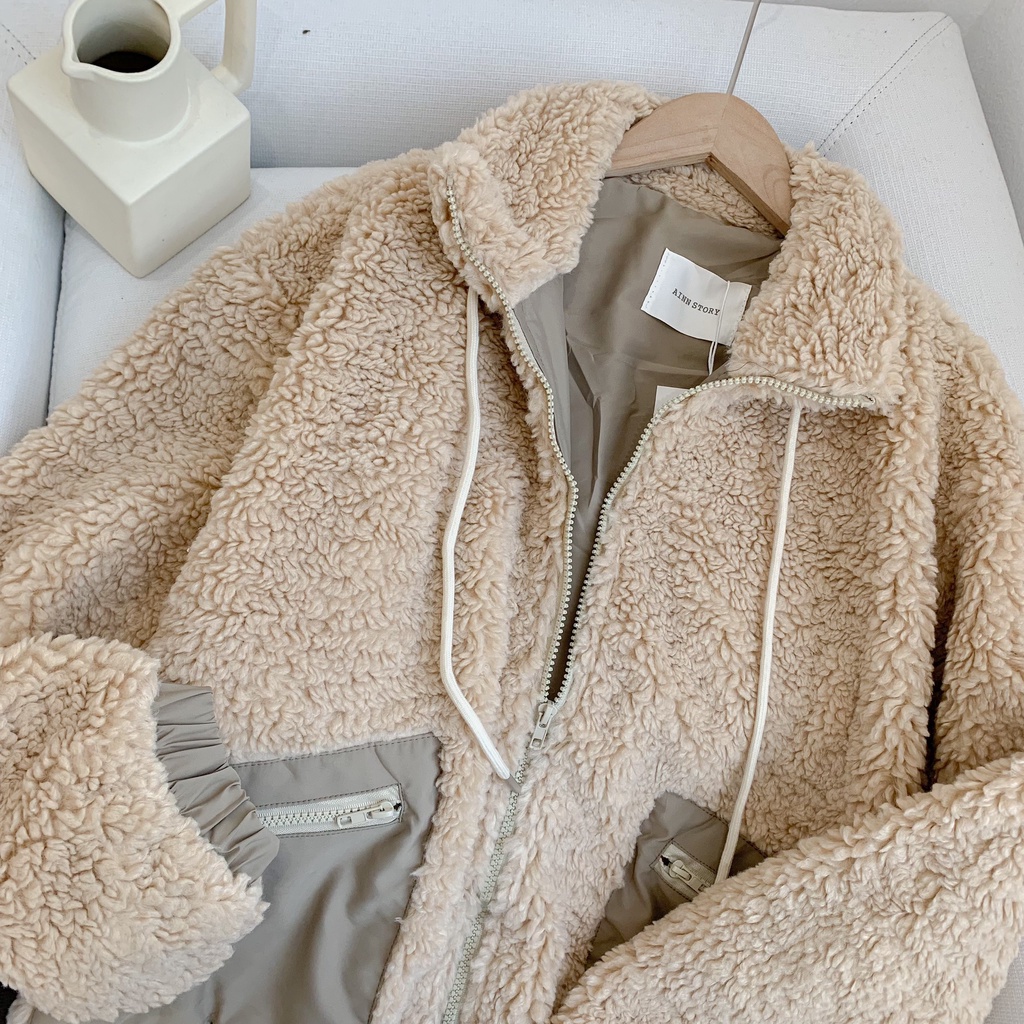 Áo khoác lông nữ dài tay phong cách Hàn Quốc 2021