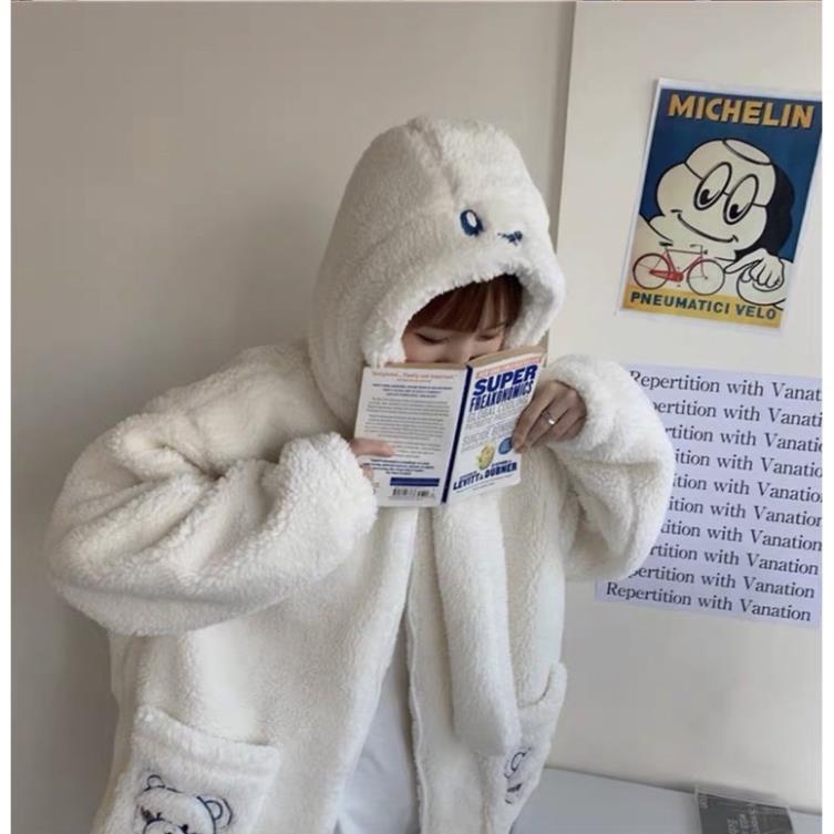 Thời Trang Nữ > Áo khoác > Áo khoác mùa đông || Áo khoác lông thêu gấu may kèm khănT