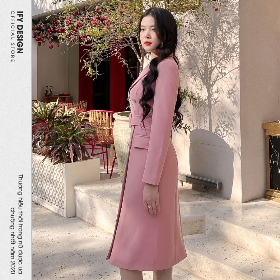 Giới thiệu Áo khoác Mangto nữ dáng dài màu hồng kèm đai eo IFY Design FM12