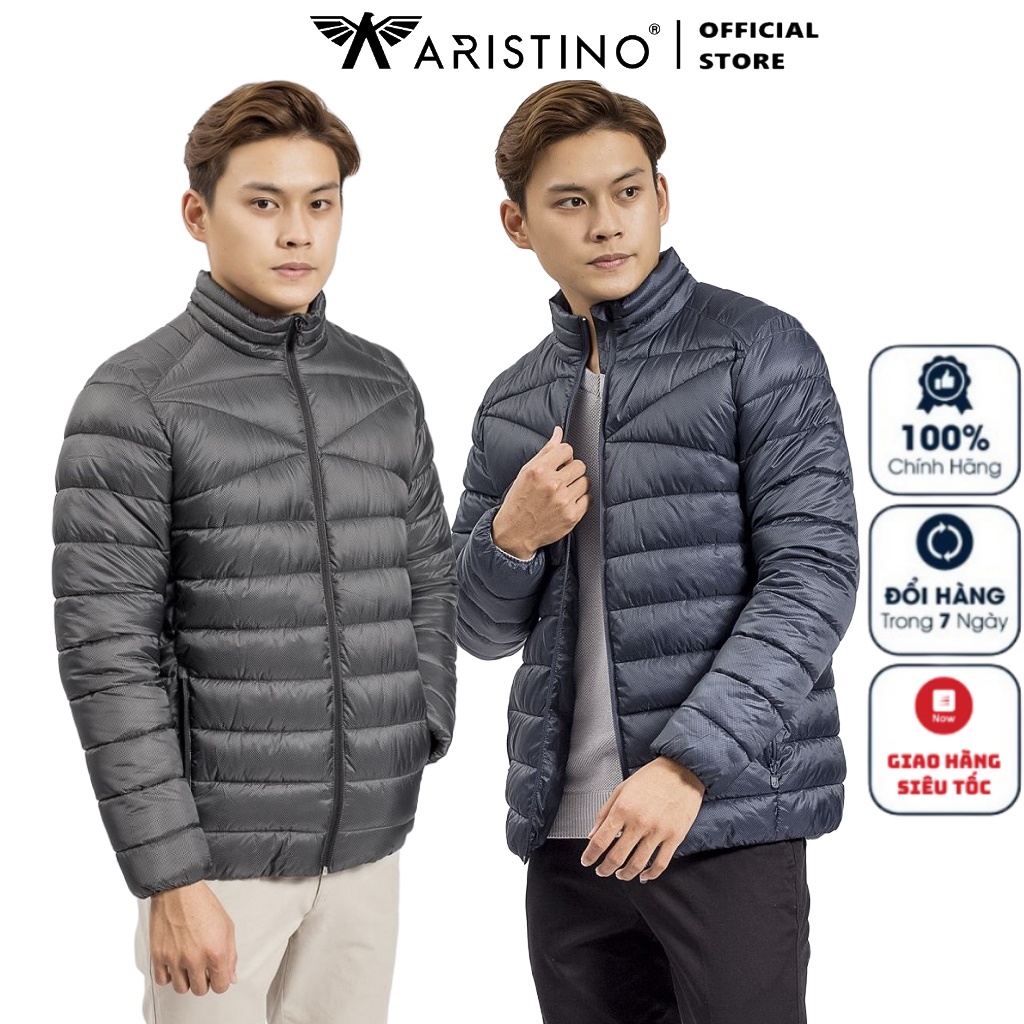 Áo khoác nam Áo phao trần bông Jacket Nam Aristino AJK044W8 dáng Regular fit cổ trụ basic bo chun gấu và tay áo
