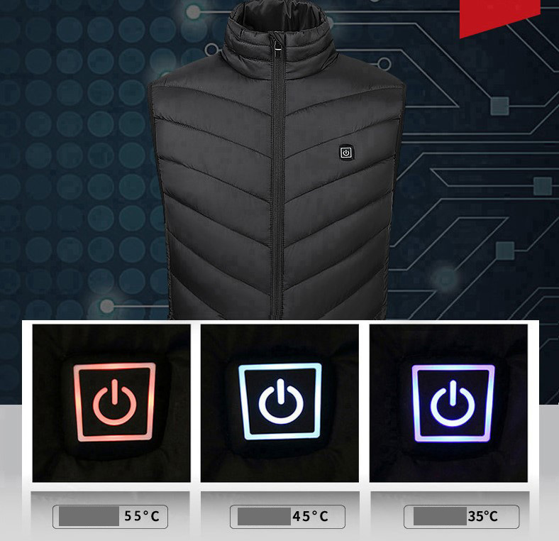 - Có 3 mức độ nhiệt thay đổi bằng cách ấn nút trên áo