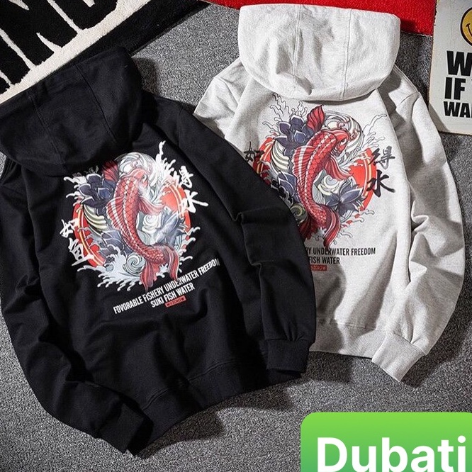 Giới thiệu ÁO KHOÁC NỈ IN HỌA TIẾT CÁ CHÉP, ÁO KHOÁC HOODIE NAM NỮ TAY DÀI FROM RỘNG- DUBATI FASHION