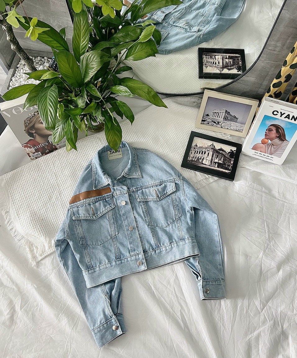 Áo khoác nữ chất jean cao cấp thời trang gắn mac da form dưới 58Kg NBAK01