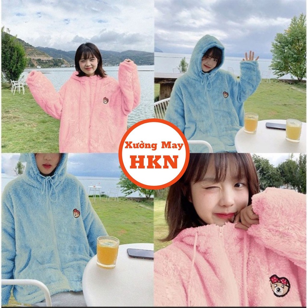 Giới thiệu Áo Khoác Nữ Lông Thêu Gấu Nơ Đỏ Chất Lông Mềm Mượt Mã 034 Xưởng May HKN