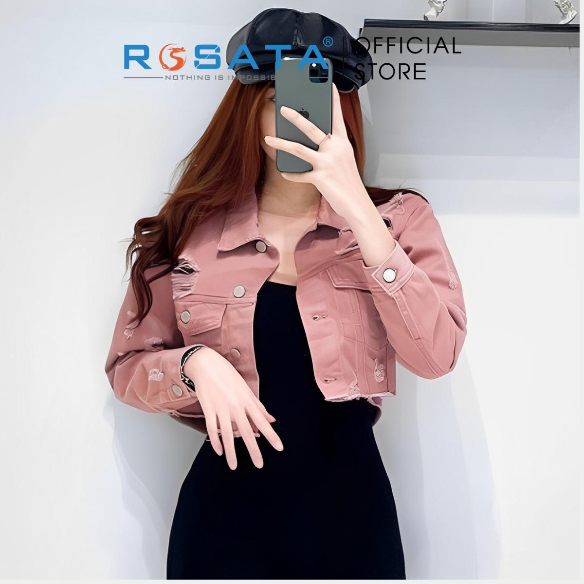 Tên sản phẩm: Áo Khoác Nữ ROSATA K06 Croptop Jeans Tay Dài Xước Mix Dạo Phố Cao Cấp Freesize Màu Hồng Xuất Xứ Việt Nam